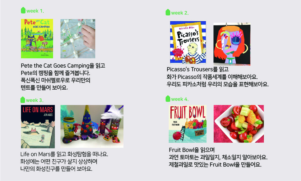 1. 키즈캔라운지의 월별테마에 맞춰 매달 4권의 새로운 그림책을 만나요.