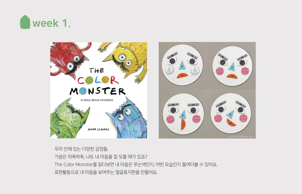 1주: 가장 기분 좋았을 때, 가장 화났을 때를 색으로 표현해오세요.