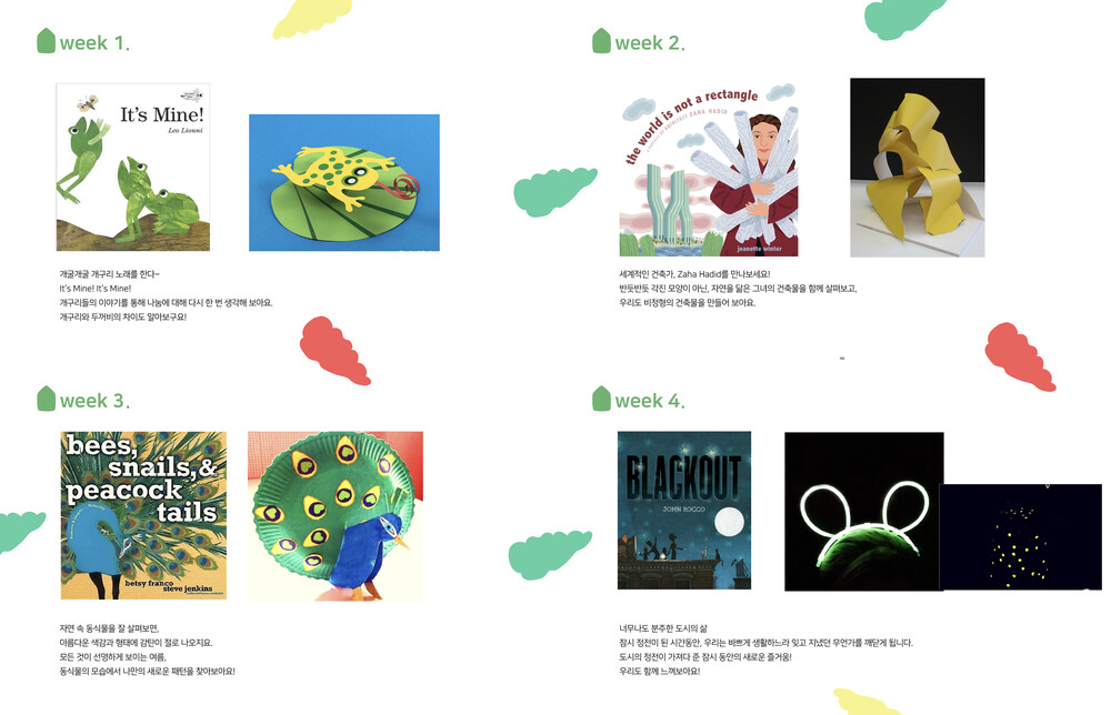 매주 한 권의 그림책과 표현활동을 즐기며 새로운 주제를 접하고,