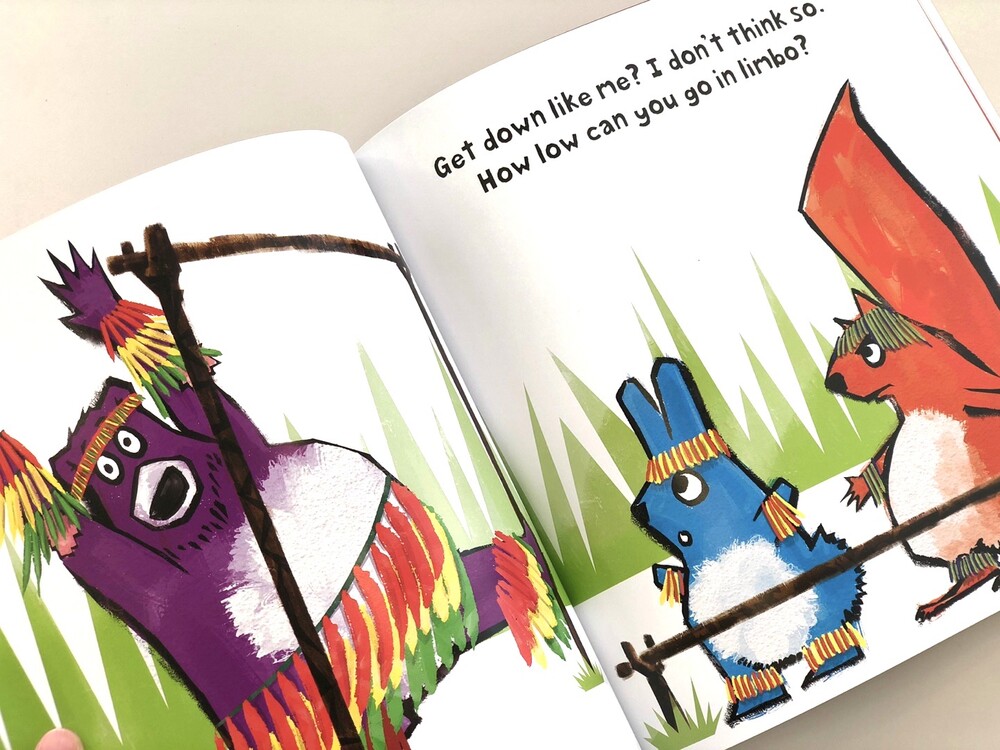 Bear’s in a dancing mood, and his friend Bunny is happy to help out with the boom box.