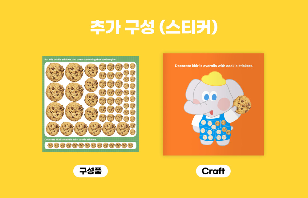 스티커가 있어서 실물 쿠키 스티커를 붙이고 그 위에 확장하여 그릴 수 있어요.